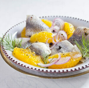 Det låter lite utöver det vanliga och det är lite magi över detta. Du tillför en helt ny arom till en befintlig sill och minskar sötman en aning. Och sedan skapar du perfekt matchning med två olika viner. Ett med toner av apelsin och melon, och det andra av jordgubbar.