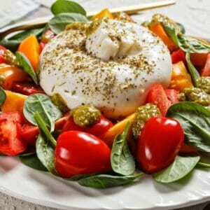 En riktigt klassisk italiensk förrätt som också passar som en lyxig lunch. Supersnabb och enkel att tillreda. Tänk bara på att burratan ska vara färsk så den måste köpas samma dag som den ska användas, annars förlorar den sin krämighet. En fräsch och krämig favorit.