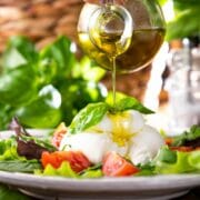 Burrata är en italiensk specialitet, som egentligen är en Mozzarella, som blandats med grädde. Du köper den färdig och den finns idag i de flesta välsorterade mataffärer. Det är en verklig delikatess och du tar fram smakerna med tomater, basilika och en god olivolja.