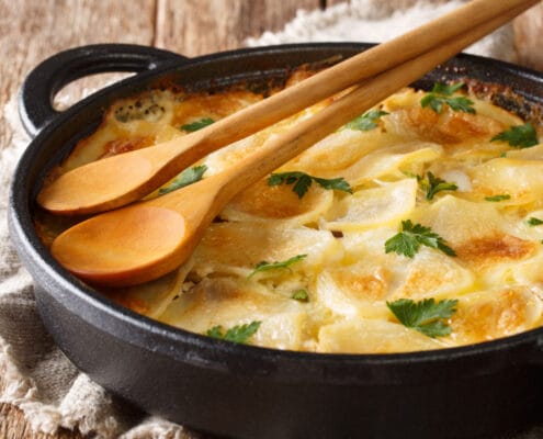 En enkel men väldigt trevlig kvalitetshöjning på din potatisgratäng. Enormt lättlagat och det formligen smälter i munnen.