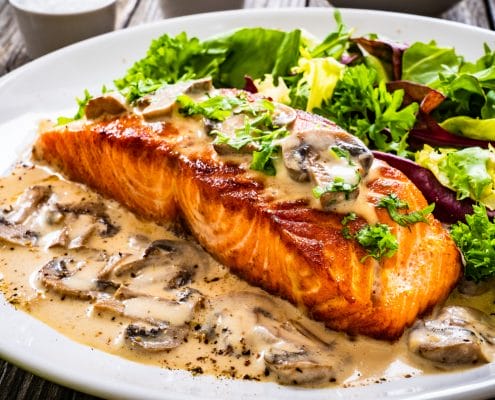 Stekt lax med svampsås