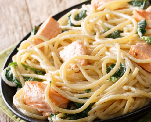 Detta behöver du till fyra:5 hg laxfilé, i tärningarspaghetti efter aptitgrovt hackad dilltill såsen:2 dl riven parmesan1 dl vitt vin1 msk kantarellfond1 msk lökfond2 msk färsk timjan2 msk pressad citron1…
