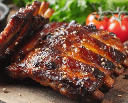 KöttFörsök hitta "spareribs" (revbensspjäll) med så mycket kött på benen som möjligt. Lättlagat och förträffligt gott.