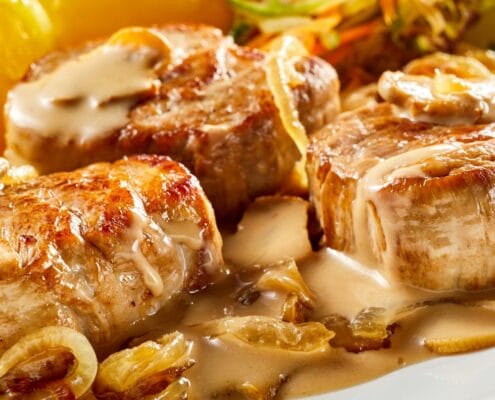 Detta behöver du till fyra:6 hg fläskfilé, putsad och…