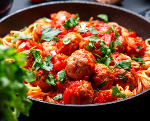 Detta behöver du till fyra:400 g fläskfilé, putsad och skuren i tärningar1+ 2 msk olivolja1 stor lök, finhackad1 stor morot, finhackad1 selleristjälk, finhackad3…