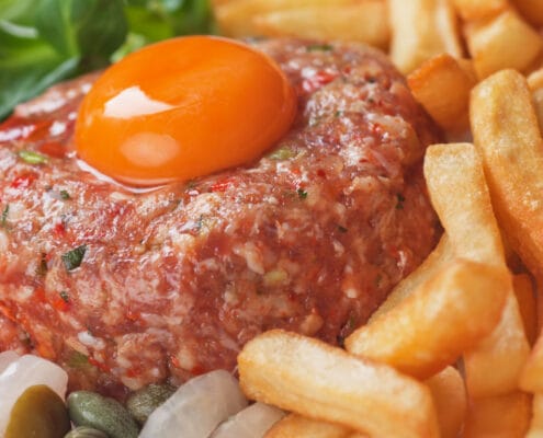 Detta behöver du till fyra:6 hg grovmalen högrevsfärs alternativt 6 hg oxfilé, skuren i ultra små bitar eller skrapad med vass kniv till färs.4 schalottenlökar,…