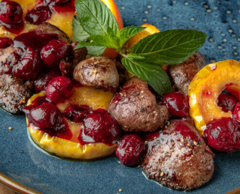 En rätt som gör dig glad. Salladen är inte så söt som man kan tro. De flesta bär och stenfrukter är syrliga och en aning beska och det blir perfekt till köttet.Detta behöver du till fyra:Köttet:800 g fläskfilé, trimmad och klar3…