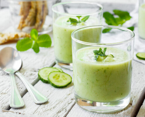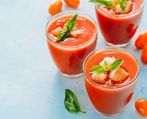 SopporDet är en kall soppa, som blir perfekt på sommaren. Du serverar den som lunch, förrätt eller som shot i små glas på buffén. Du bara blandar ingredienserna och mixar i din matberedare. Kyl och servera svalt.