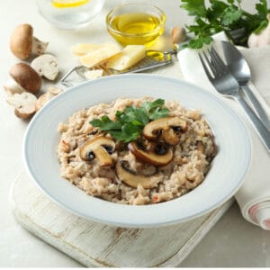 250 g champinjoner till risotto, finhackade + 100 g till serveringen, skivade