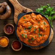 Gillar du kryddig mat kan du njuta av en indisk kycklingrätt med mycket smak. Det är roligt att laga mat med kryddor som vi normalt förknippar med bakning. Men det blir väldigt bra. Och det går rysligt fort när du väl hackat och rivet det som ska rivas. (Och så tar det ju ett par timmar för att marinera kycklingen i youghurt). Men svårt är det inte.