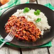 Det ska vara lite hetta i den här rätten. Du avgör ju det själv genom att öka eller minska de heta inslagen i receptet. Men det ska ju bränna till lite i gommen. Därför blir det bra med lite kokt ris till.