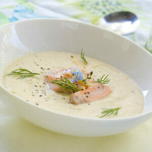 Kyld laxsoppa med laxbitar