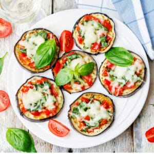Lägg zucchiniskivorna på bakpapper på en plåt. Lägg på tomatskivor eller bitar. Droppa över balsamvinäger. Strö på hackad basilika och placera mozzarella överst.