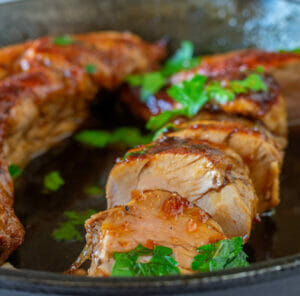 Grillad fläskfilé med salsa på jordgubbar och kiwi