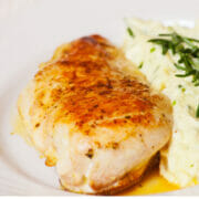 Innan serveringen sätter du ugnen på 150 grader. Du placerar kycklingfiléerna i en ugnsfast form. Sätt in formen med kycklingen och låt den bli färdig och det tar ca 25 minuter lite beroende på storlek. Pensla med marinad då och då. Stick med en sticka och se att det kommer klar vätska och inget annat. Låt kycklingen vila. Marinaden kokar du upp och silar sedan och kokar samman med en deciliter grädde så har du en bra sås. Servera kycklingen med såsen med rikligt med färsk rosmarin.