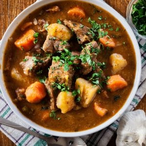 Det irländska är mest att du häller Guiness i grytan i stället för vin. Vi har använt lammstek, men det går lika bra med märgpipa eller högrev från oxe.