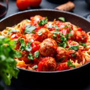 Lägg köttbullarna i pastan innan servering och blanda runt. Serveramed hackad persilja. Om du vill kan du strö på lite extra parmesan vid serveringen.