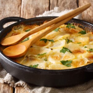 Ställ mitt i ugnen i ca 50 minuter eller till dess att grädden kokat in och potatisen är mjuk.