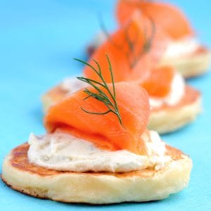 Lägg en rejäl klick av pepparrotsröran på blinierna.