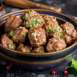 Gör köttbullarna ca 2,5 cm stora. Lägg dem på bakpapper på en plåt och baka i 20 minuter mitt i ugnen.