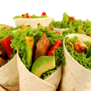 Placera ut tortillabröden och värm dem gärna en stund i ugnen innan du monterar dem.