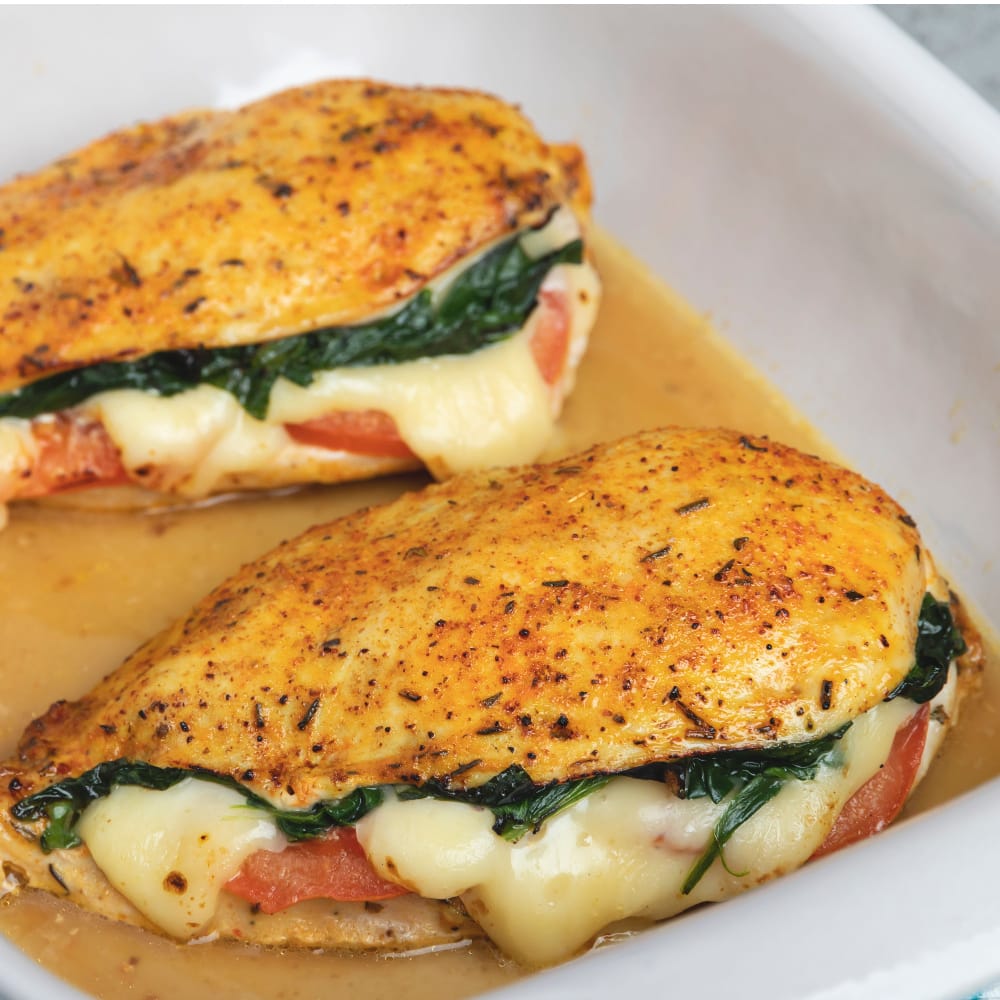 Lägg tomatskivor på underdelen av kycklingen. Salta och peppra.Lägg på ostskivorna.
