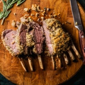 Möra fina lammrack, som du ger en kryddig toppning innan den körs färdig i ugnen. Lätt och gott, och det tar inte så lång tid. Servera bara med en sallad eller om du behöver mer näring en blandning av råstekta morötter och potatis.