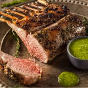Ställ mitt i ugnen och låt grytsteka i 25 minuter eller till dess att innertemperaturen är 57 grader (medium rare).