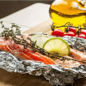 Lägg aluminiumfolie på en plåt. Pensla folien med olja.Placera fisken på folien.Blanda olja, limeskal, limesaft och salt och peppar i en skål.