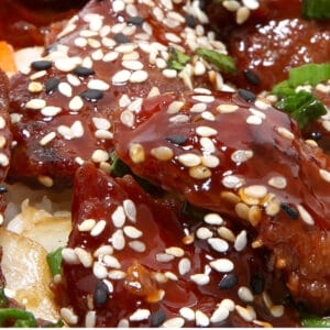 Servera på tallrik. Häll över lite av såsen och rikligt med sesamfrön.