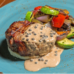 En klassiker där du kan byta ut köttet mot en biff eller varför inte med lite stekt laxfilé. Såsen gör jobbet och passar med vinet. Det är huvudsaken. Fungerar som riktig festmat.