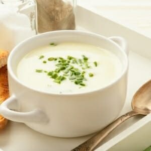 Lägg alla ingredienser utom pepparroten och grädden i en kastrull. Rör om och koka upp. Låt sjuda ca 15 minuter. Lägg i grädden och koka upp. Blanda samman majsmjöl och lite vatten och rör ner det i soppan under omrörning. Låt sjuda ca 15 minuter. Lägg i pepparroten och stäng av spisplattan. Rör om. Smaka av med salt och peppar. Håll varm utan att koka. Servera varm med lite gräslök.