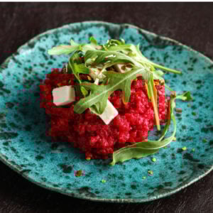300 g rödbetor, kokta i saltat vatten, därefter skalade och finhackade