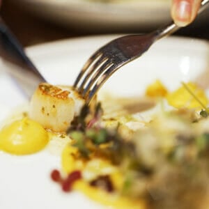 Rödtunga och pilgrimsmusslor i vittvinssås med dill