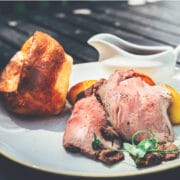 Den typiska engelska söndagsmiddagen, som man äter efter en långpromenad som gärna innehåller ett eller ett par pubbesök medan steken bakas i ugnen. Riktigt gott. Särskilt efter en promenad.