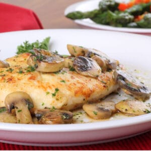 Servera kycklingen, eventuellt i skivor, med svampen och vitlökssmöret.