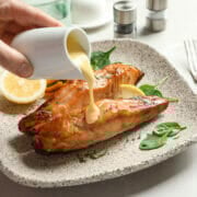 Stekt lax i en vitlöks- och senapssås