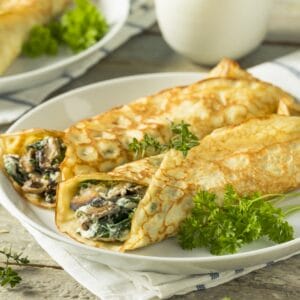Fyll crepen och rulla ihop dem. Dekorera med lite salladslök och servera direkt, varma.