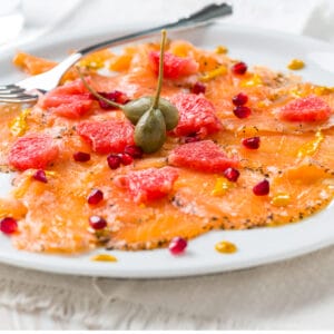 Du serverar den alldeles som Carpaccio och med spännande tillbehör som vattenmelon och granatäpple.