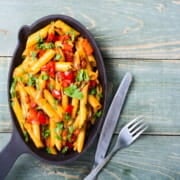 Det smakar alldeles som det brukar och genom att rosta grönsakerna i ugnen adderar du mycket smak. Du som inte är vegetarian kan med fördel riva över Parmesan vid serveringen. Men det finns ju vegetariska alternativ.